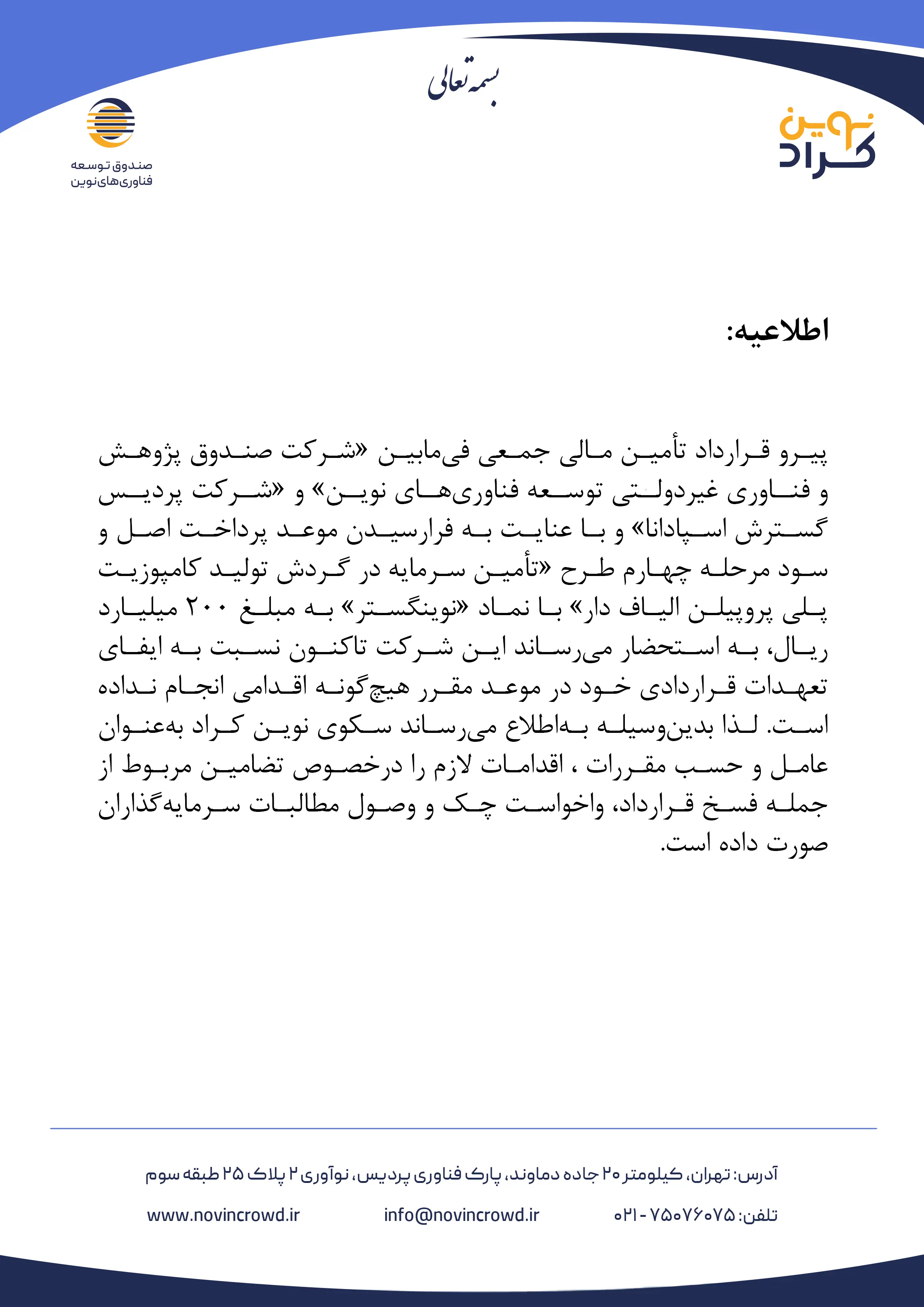 سلام وقت بخیر . در انتظار تایید فرابورس هستیم و به محض دریافت تاییدیه گواهی مشارکت صادر خواهد شد . جای نگرانی نیست .دلیل تاخیر هم ایراد ارتباط فرابورس و سپرده گذاری مرکزی هست که در حال رفع آن هستند و به محض رفع مشکل گواهی های مشارکت صادر می شود ممنون از شکیبایی شما